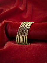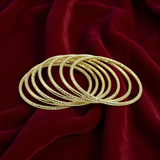 Embrace timeless tradition with this stunning set of 7 Taqlidi bracelets, beautifully plated with 18K gold for a radiant shine. Designed with intricate detailing, these bangles reflect elegance and heritage, making them perfect for both daily wear and special occasions.